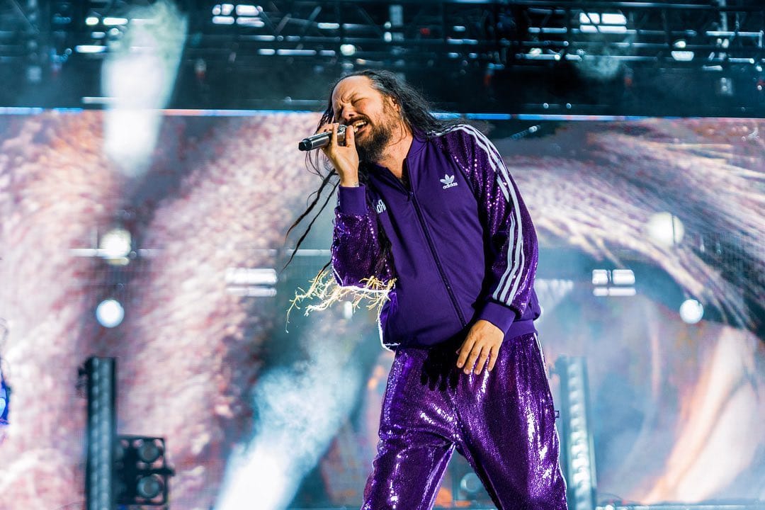 Hubo algunas publicaciones en redes sociales de socios de Adidas con fotos de Korn y mensajes como «Un placer tenerlos abordo» y ese tipo de cosas, toda esta información fue un pequeño rompecabezas que nos llevó a lo que vimos en el Sick New World 2023 con el regreso del increíble outfit purpura de lentejuelas de Jonathan Davis y finalmente culmina con la colección Adidas X Korn, una colaboración con la marca que incluye ropa y sneakers totalmente personalizados.