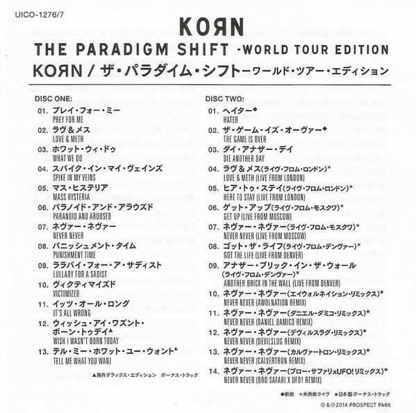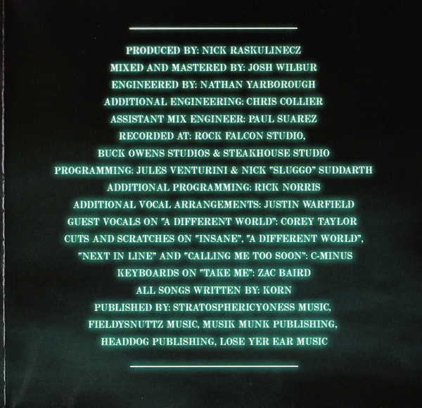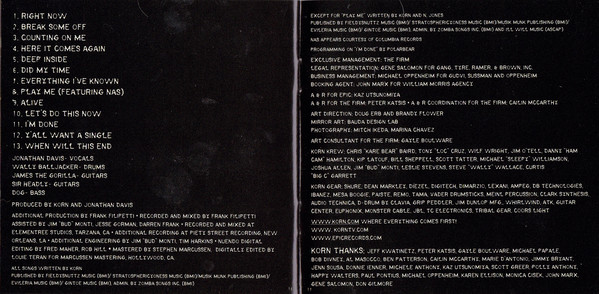 NOTA: La pista 4 (disco 1) fue escrita y grabada para su inclusión en el álbum debut de Jon Davis, pero terminó siendo reelaborada como una canción de Korn.