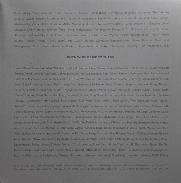 Korn | Life is Peachy | Follow The Leader | Issues | Untouchables | Take a Look In The Mirror | See You On The Other Side | Untitled | Korn III | The Path of Totality | The Paradigm Shift | The Serenity of Suffering | The Nothing | Requiem | Discografía